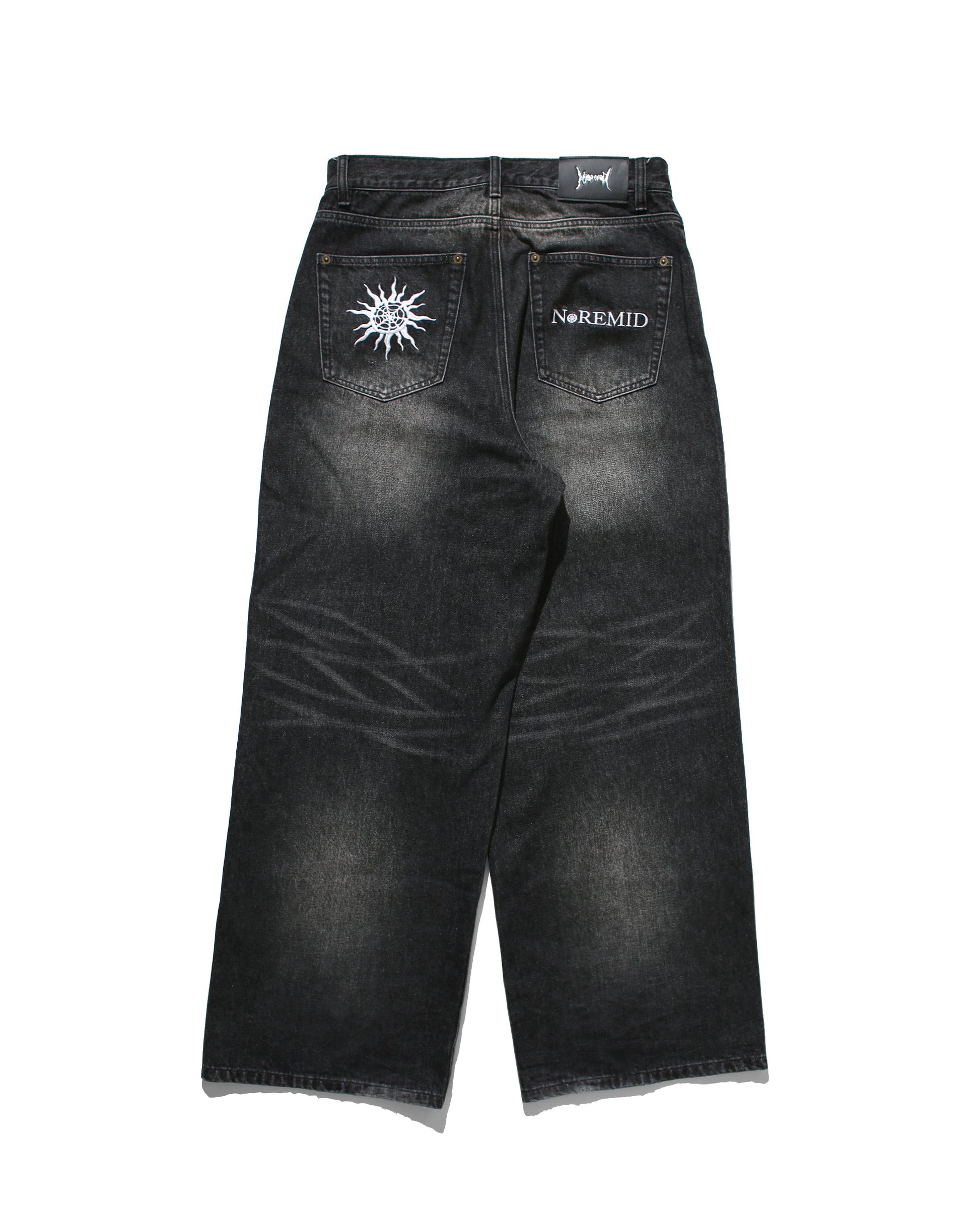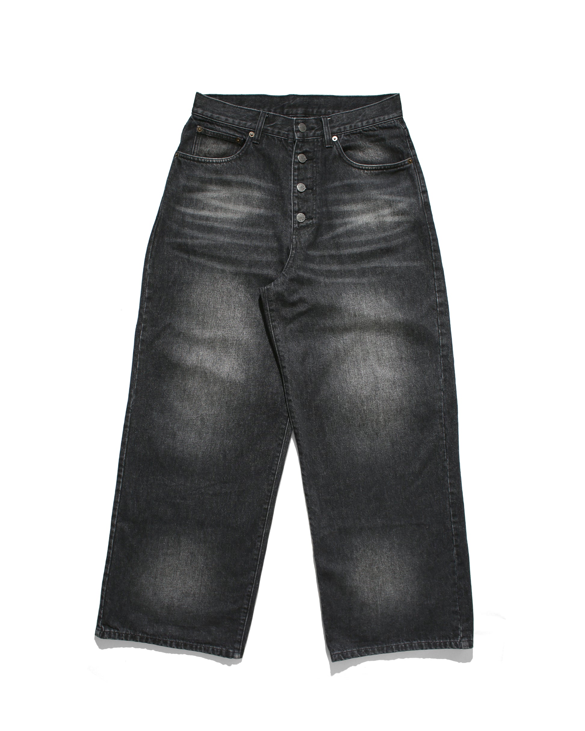 BTN FLY RIGID DENIM WIDE PANTS - BLACK FADE